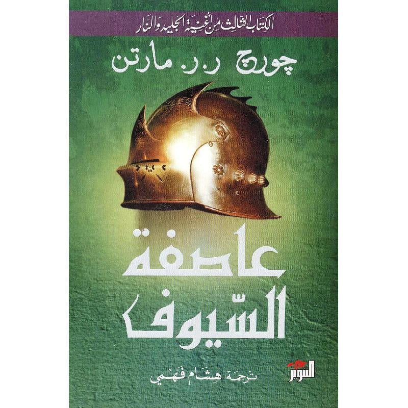 في عاصفة السيوف يواصل جورج ر.ر.مارتن أحداث تحفته الفنية الأصيلة ، التي تحوي أفضل ما في الأدب الخيالي من إثارة وغموض ومغامرة ، على مستوى اكبر من الواقع بالإضافة إلى مجموعة كبيرة من الشخصيات الأساسية والفرعية المثيرة لاهتمام وتفاعل القارئ ، وهو ما جعل الملايين من عشاق الفانتازيا حول العالم يقعون في غرامها ويتابعون أجزاء ملحمة “أغنية الجليد والنار ” بمنتهى الشغف . ما زالت حرب الملوك الخمسة مشتعلة ، تعاني من ولاتها جميع أنحاء الممالك السبع إلا قليلاً . على العرش الحديدي يجلس الملك الصبي جوفري بينما يسعى جده ويد الملك إلى تأمين حكمه ، ومن ثم تأمين السلطة لعائلة لانستر ، مخططاً للقضاء على ستانيس باراثيون الذي خرج مدحوراً من معركة النهر الأسود ، وعلى الذئب الصغير روب ستارك الذي يقود حملة في غرب البلاد رغم أنه فقد وطنه في الشمال ، وفي تلك الأثناء تشق الملكة المنفية دنيرس طريقها في قارة أخرى أغرقتها الدماء ، ومعها التنانين الثلاثة الحية الوحيدة في االعالم ، وفي الشمال يتحرك جيش جرار من الهمج استعداداً للهجوم على الجدار وغزو الممالك السبع وإن كان هناك ما هو أسوأ منه يتقدم أقصى الشمال ، العدو الحقيقي الذي ينشغل الجميع تقريباً بقتالهم عنه وربما لا تكون جيوش الأرض كلها قادرة على درعه .