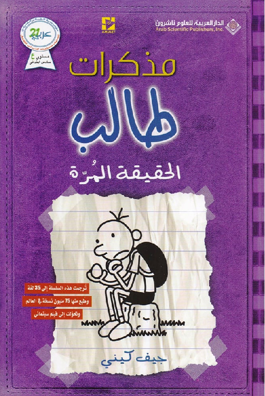 من ضمن سلسلة روايات الفتى الضعيف، “غريغ هيفلي” الأكثر نجاحاً صدرت عن الدار العربية للعلوم ناشرون في بيروت النسخة العربية من “مذكرات طالب.. الحقيقة المُرة Diary of A wimpy Kid: The Ugly Truth” بقلم الروائي الأميركي “جيف كيني” أما الترجمة فهي لـ “زينة إدريس”. وبالعودة إلى بطل مذكرات طالب الذي بدا أنه يستعد لدخول “السنوات المربكة” أو سنوات تحمل المسؤولية والتفكير في المستقبل، سنرى معاً ماذا ستخبأ له السنوات القادمة؟ وهل النضوج كل ما ينقصه فعلاً؟ فجأة، وجد غريغ نفسه يتعامل مع الضغوطات الناجمة عن الحفلات المختلطة، وزيادة المسؤوليات، ومع التغييرات المربكة التي ترافق مرحلة النضوج أيضاً: كل ذلك من دون أن يكون صديقه الحميم راولي موجوداً إلى جانبه. فهل سيتمكن غريغ من اجتياز هذه المرحلة بمفرده؟ أم إنه سيضطرّ إلى مواجهة الحقيقة المرّة؟ قالوا عن الرواية: “مذكّرات طالب، عازمة على السيطرة على العالم” – مجلة تايم. “السلسلة الأكثر نجاحاً التي نشرت للأولاد” – واشنطن بوست. “إن كان أولادكم يحبّون القراءة… وتحديداً إن كانوا لا يحبّون القراءة، فهذا هو الكتاب المناسب لهم” – ووبي غولدبرغ، ذا فيو.